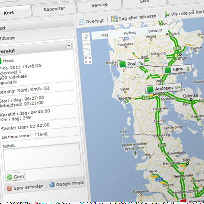 Systemet giver dig også information om, hvorvidt tændingen er slået til eller fra samt kørselsretning. Hvis du har en kunde i røret, der har behov for akut hjælp. Så kan du nemt sende den tætteste vogn af sted for at hjælpe kunden med det samme.